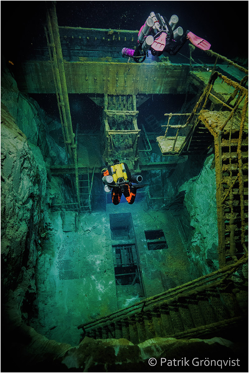 The wrecks of the Gulf of Finland quickly became his focus. Cold, dark, and historically rich, they offered endless exploration—but also limitations. Winter ice made access unpredictable, pushing him inland and underground. Mine diving became a natural extension of wreck exploration, and with it came a steady progression toward more advanced and technical forms of diving.