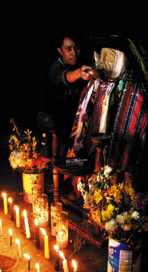 Maximón is also something of a bully whom its best not to cross, but who can grant wishes for success. With that in mind, we found a guide who could lead us up steep hills and through narrow winding streets to Maximóns current shrine location. We entered and engaged in ritual negotiations with the attendants, and eventually bartered the appropriate offerings, hoping that with Maximons influence, we would increase our odds of success in searching for Mayan relics.