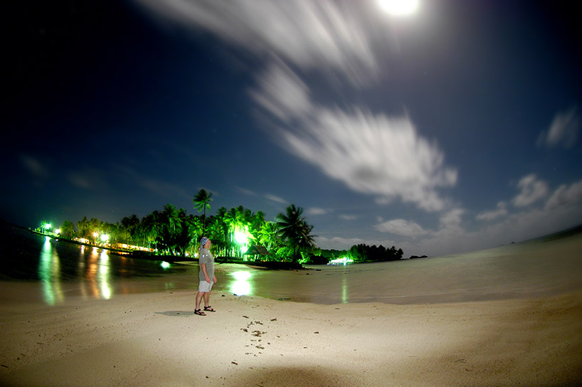 Below: Author standing on Blue Lagoon Resort beach for a Long exposure moonlight only night photo. |