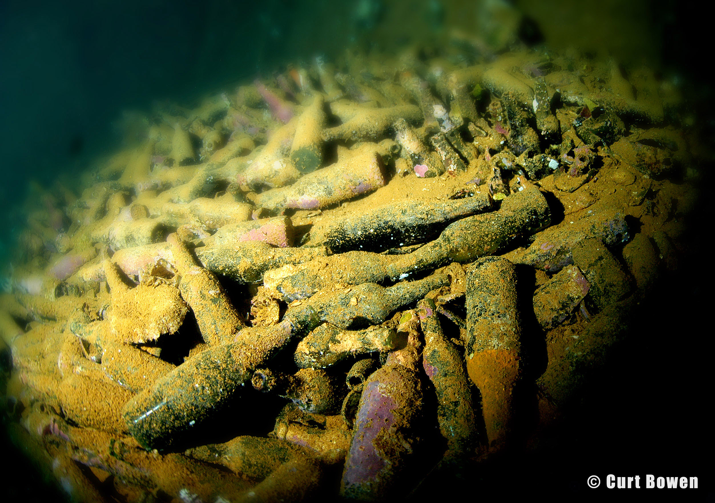 Above Right: Thousands of beer bottles scatter the second level of hold #5.