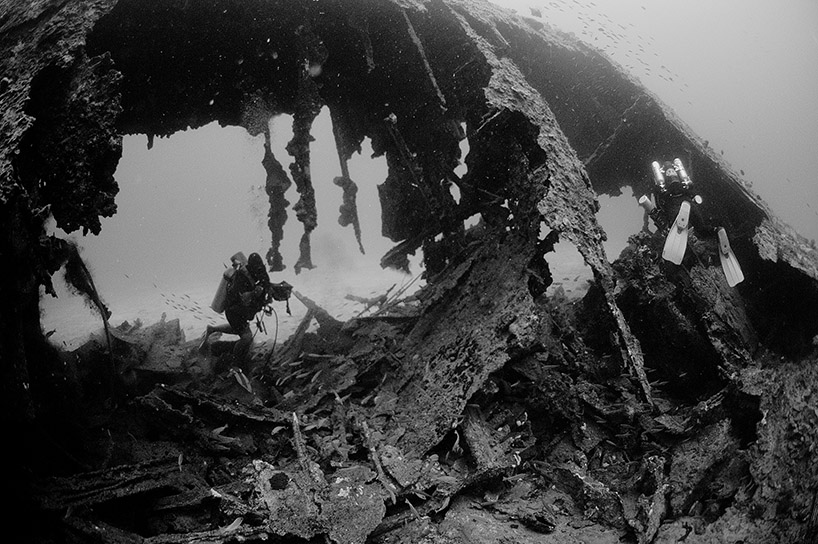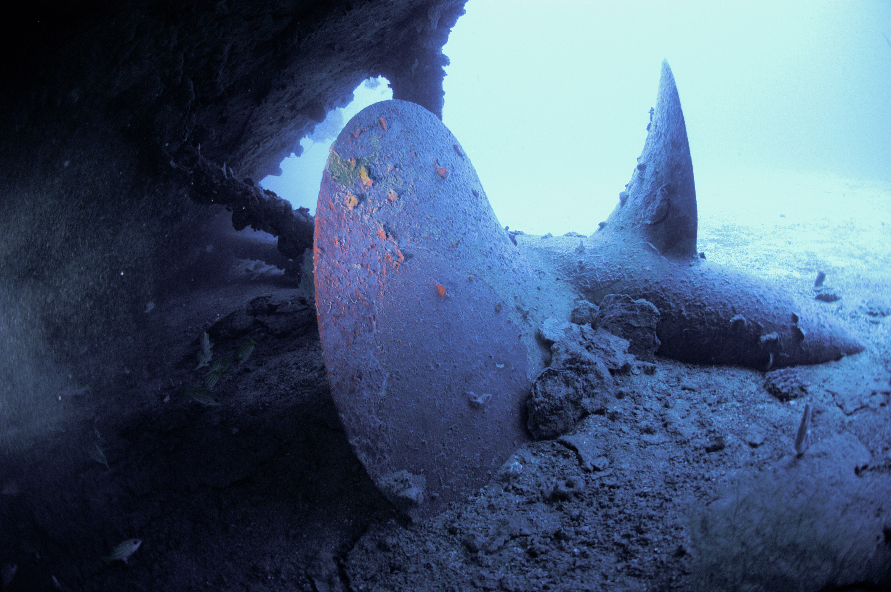 Below: A diver poses behind the Fugikawa’s massive single prop. |
