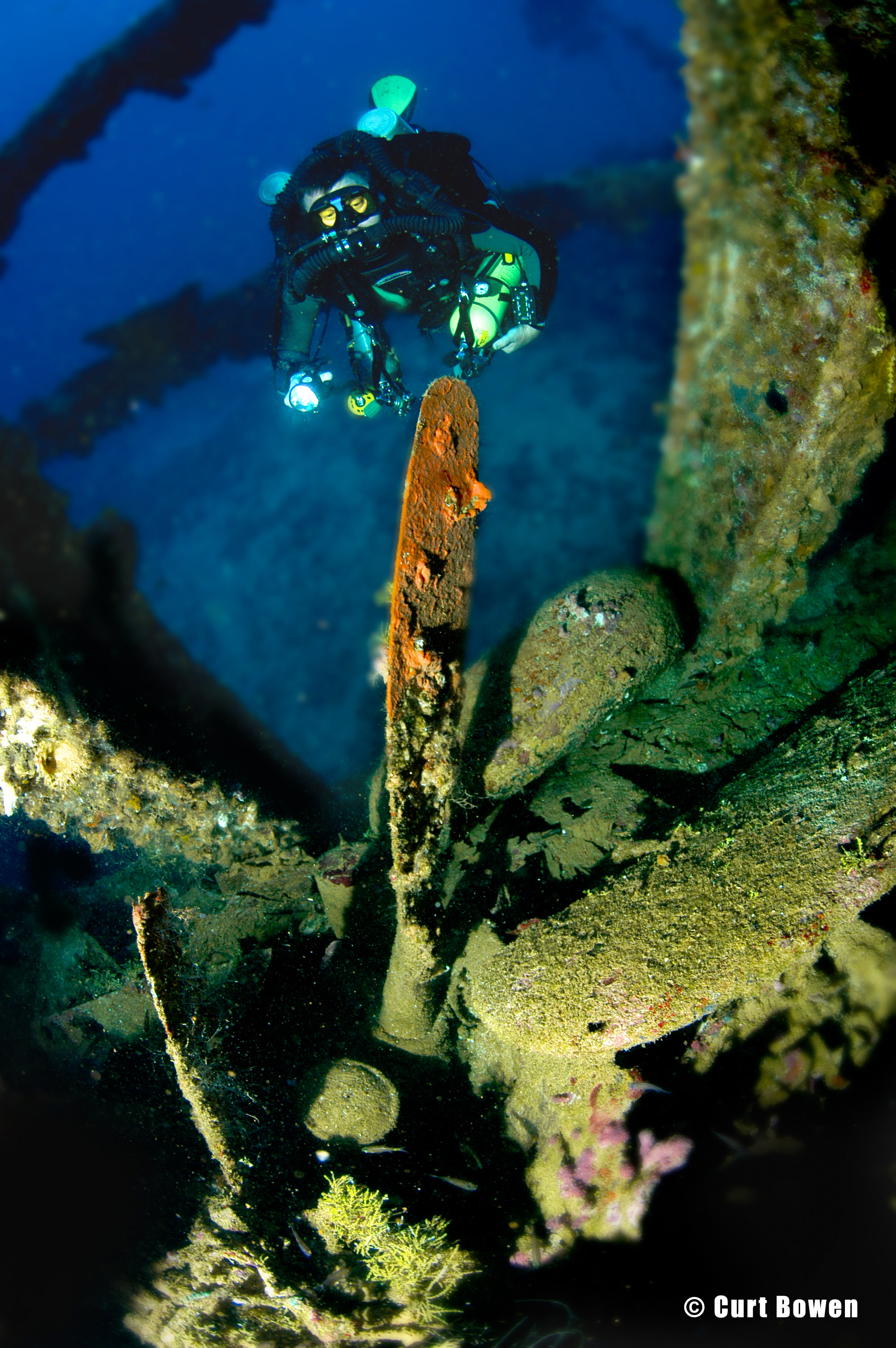 Above: CCR diver Amy Ferguson examines the prop of a 25-foot