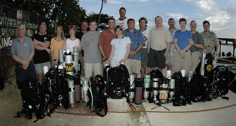 In 2002, Ron started working closer with Blue Lagoon Resort and Dive Center, located on the main island of Moen. His desire was to bring in additional equipment such as small rebreather cylinders, sodasorb, oxygen, and helium, thus making mixed gas CCR diving possible.
