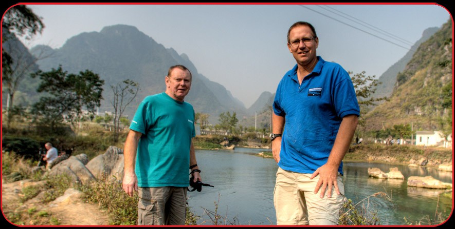 Martyn Farr and Richard Harris pose for a photo at Daxing cave.