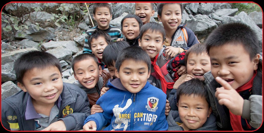 Local village children look on as the cave divers prep their equipment
