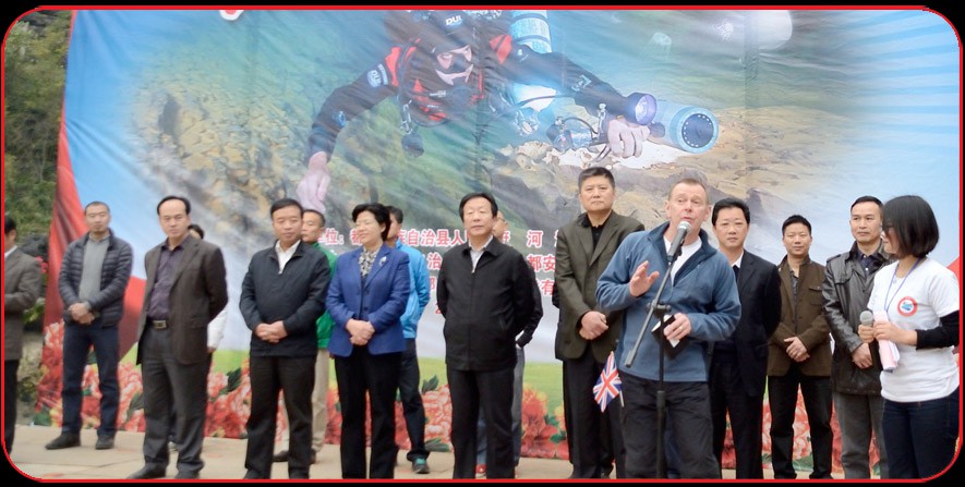 Martyn Farr speaks during the Du'An cave celebration day