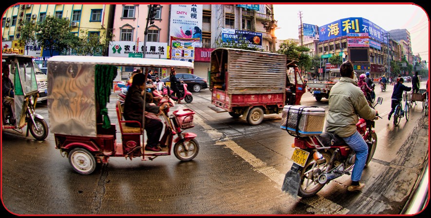 The bustling streets of early morning downtown Du’An.