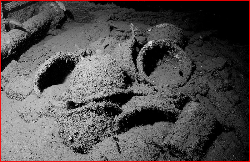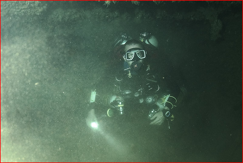 Now I am not the first guy to dive a CCR on the Coolidge, but I am surprised by the lack of images I have seen taken down past the swimming pool. Combining the task loading of a deep dive with underwater photography is not for everyone, and when problems arise, the camera is obviously the first thing to be ignored. But persistence is the name of the game in underwater imaging, so over the course of numerous dives I was able to collect a series of images from the section of the wreck between 55 and 70 meters. |