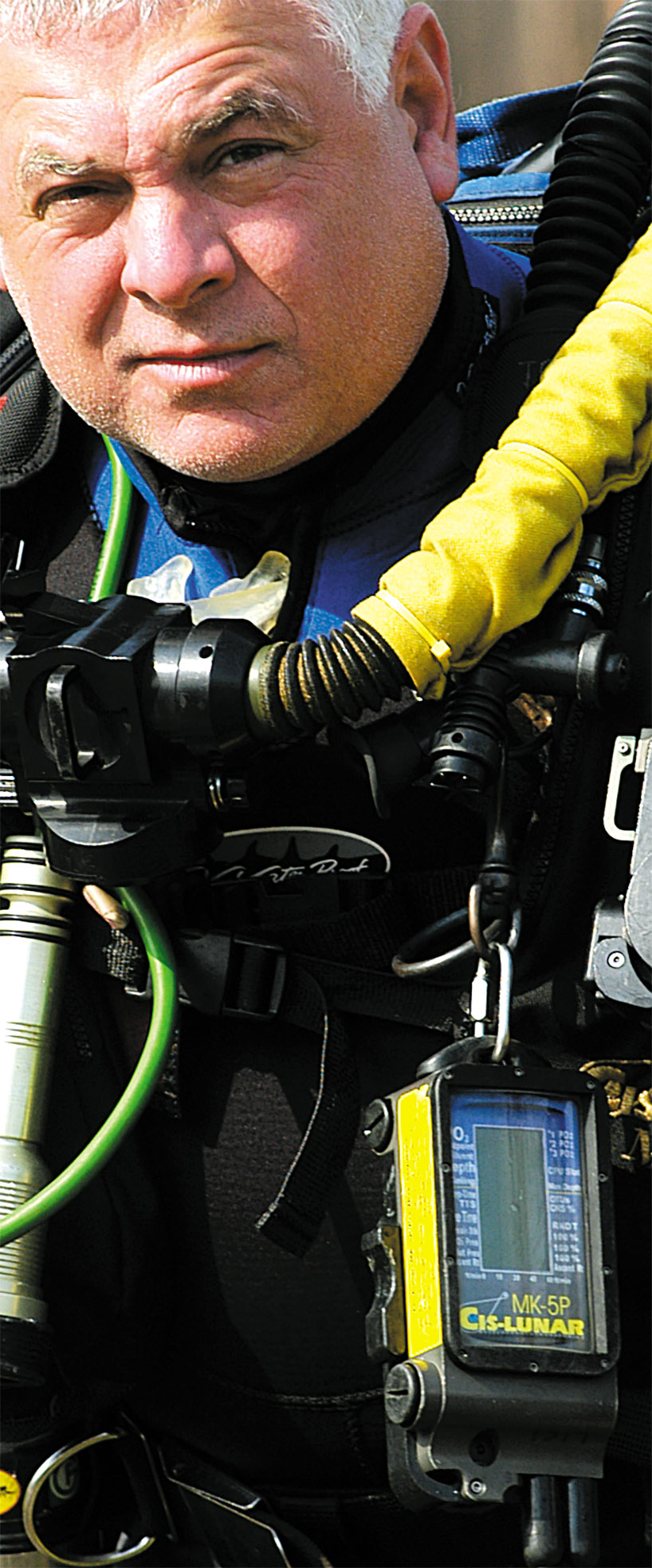 Veteran explorer Paul Heinerth prepares for a dive with his Cis Lunar rebreather. |
