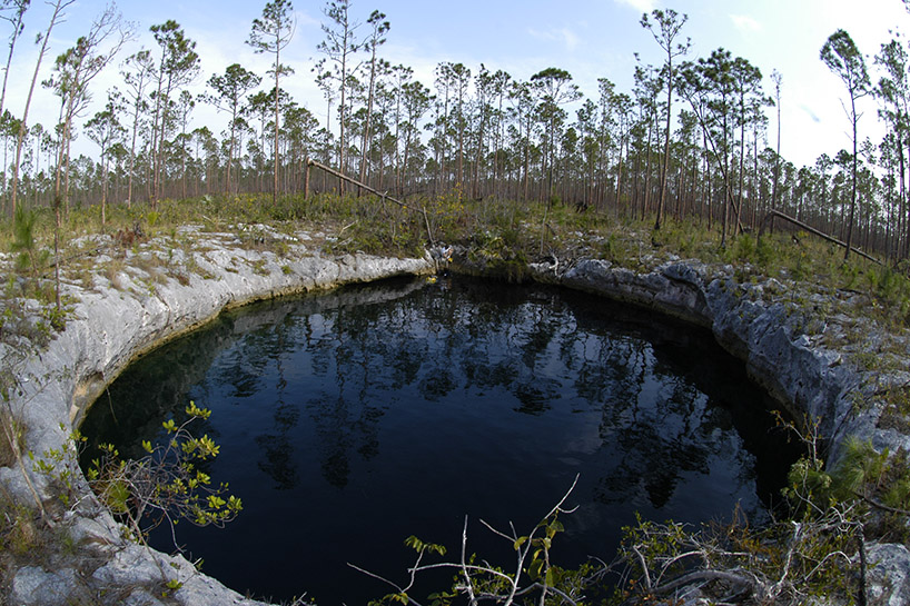 Crocodile Cave or Sawmill Sink is located deep in the pine forest of Abaco Island, Bahamas. |
