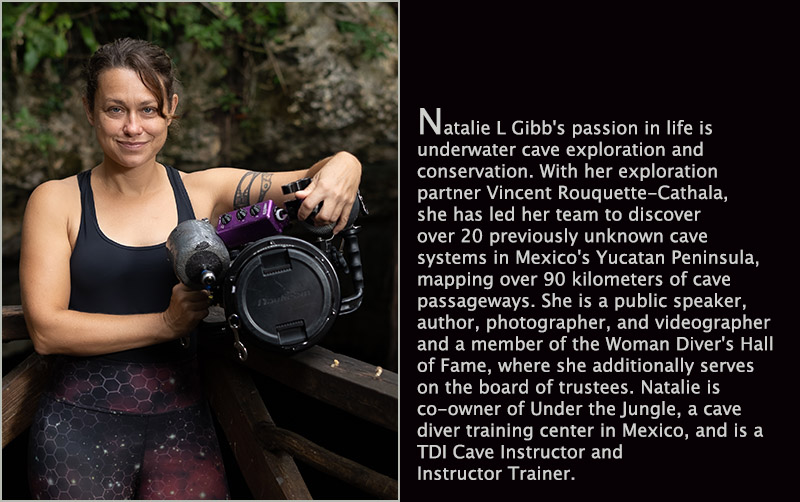 As it became accepted, I moved to sidemount. I became an open-water instructor, started guiding cave divers, and slowly moved to become a cave diving instructor. I met my exploration buddy Vincent Rouquette-Cathala in 2008, and together, we've mapped more than 100km of previously unexplored caves. In 2016, we opened Under the Jungle, our cave and technical diving center, and we both became instructor trainers. In 2018, my friend Luca gave me his old Sony A7S camera, and I fell in love with underwater photography and videography. They inducted me into the Woman Diver's Hall of Fame in 2020.