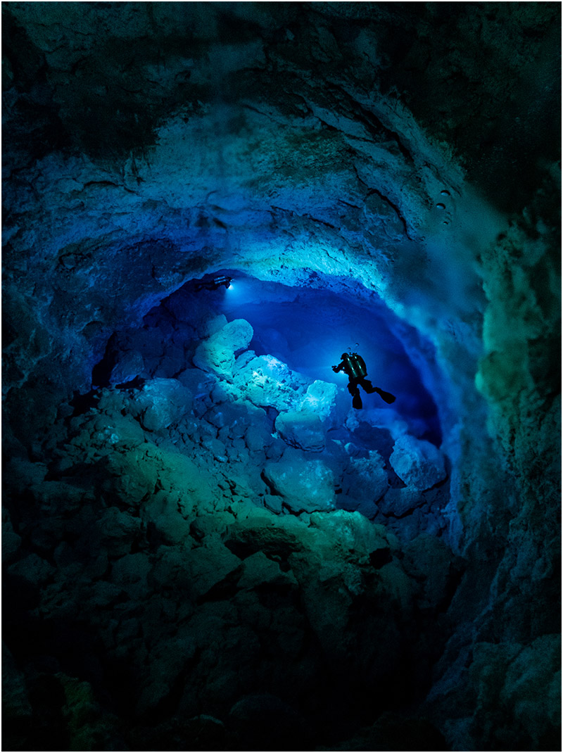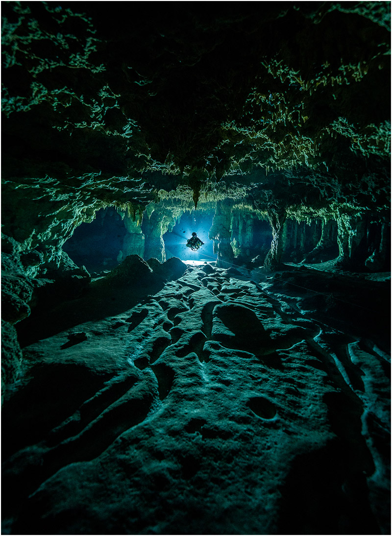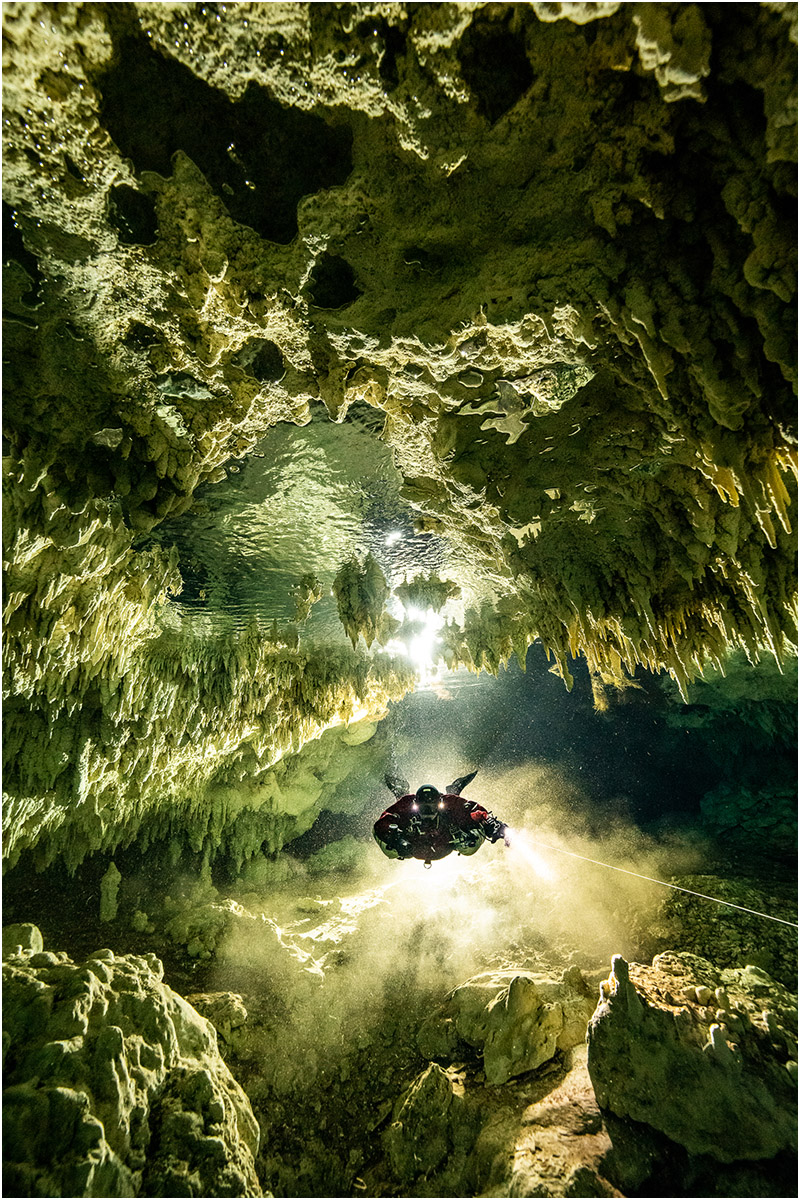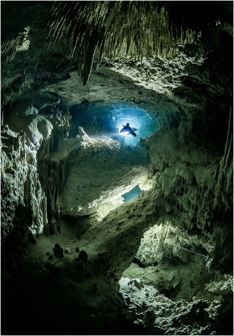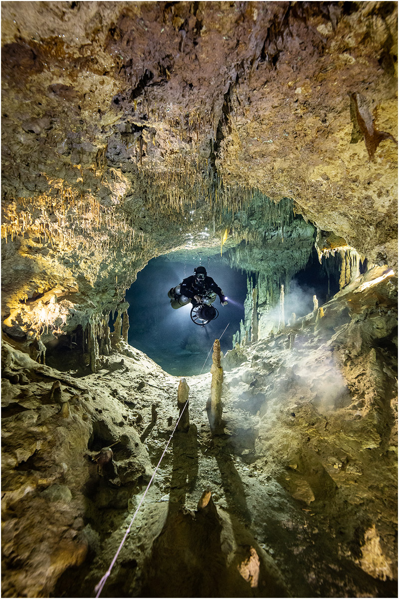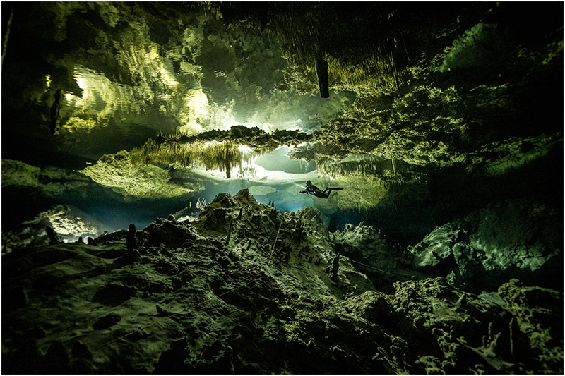 Bottom of Page: Cave Corazon del Paraiso, first dive after a few months break, got this beautiful portrait of a diver on CCR.