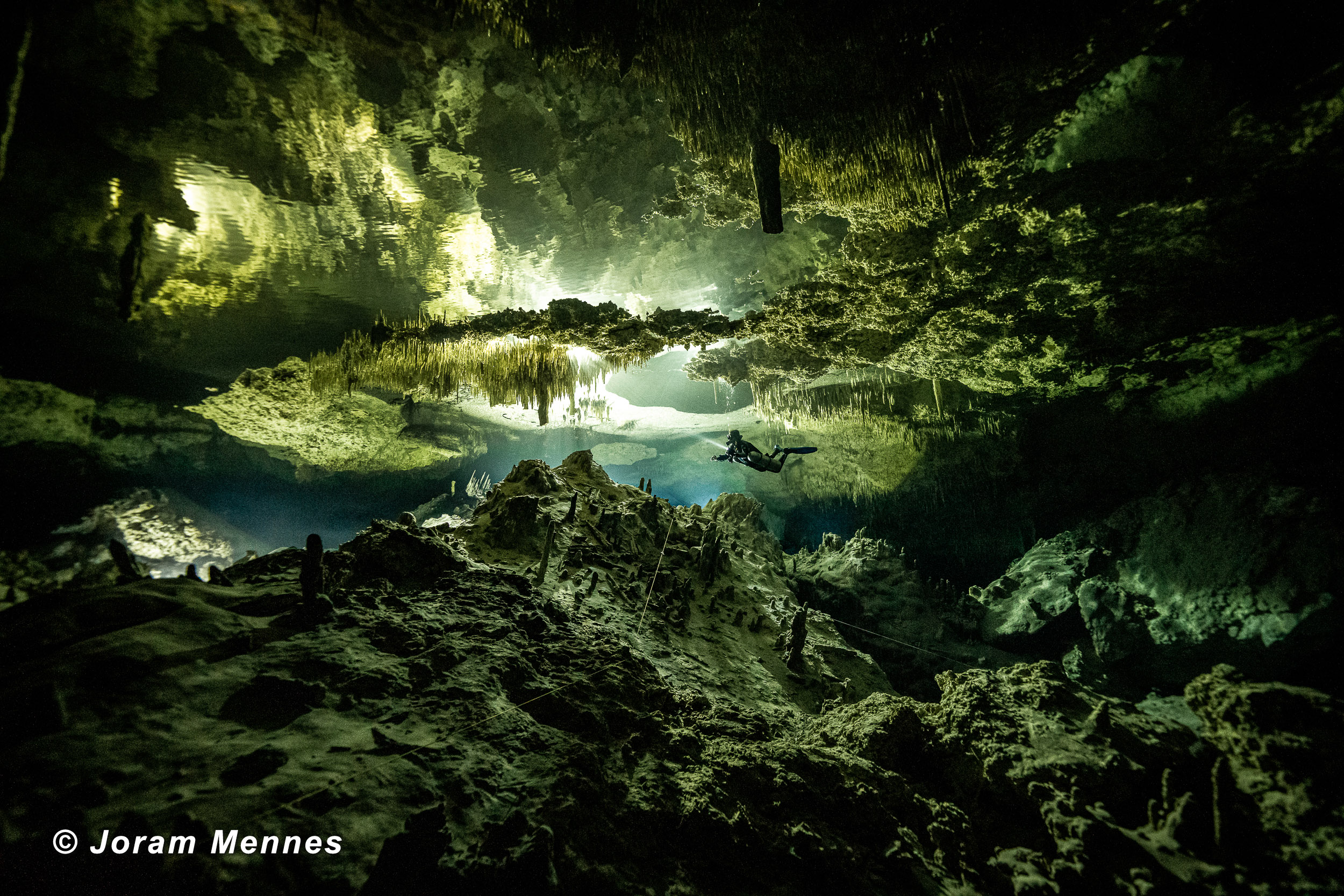 Originally I started mostly with natural light areas of the cenotes as they have amazing light rays and natural beauty. Over time I moved deeper underground and into the more difficult photography areas, attempting to capture the large formations, hydrogen sulfide layers, and massive blue tunnels.