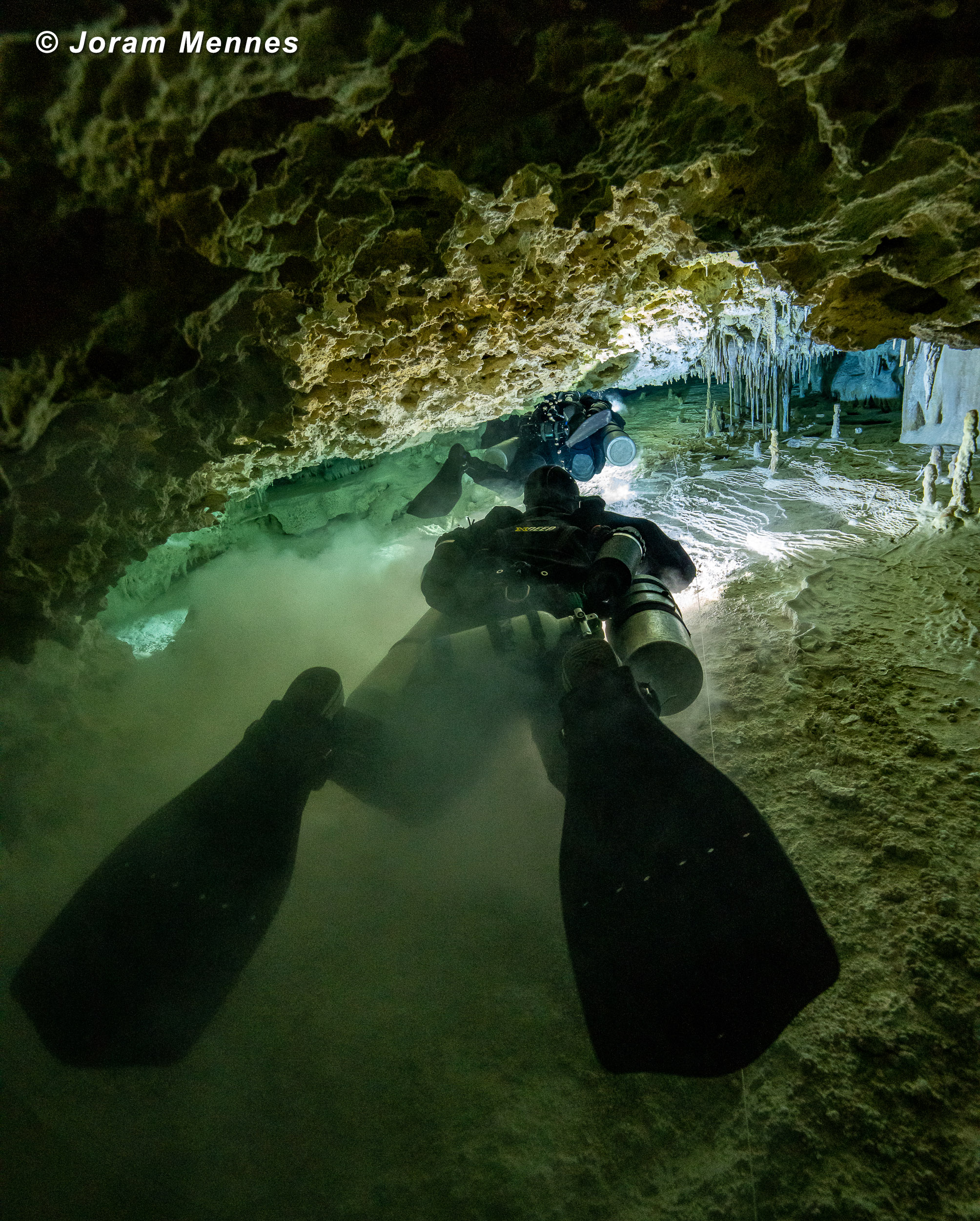 Above: Cave 2 Pisos, mistakes on navigation looking for a jump, ended in an unexpected area with roots and reflections, silt from the roots was disturbed and gave it a bit of drama.