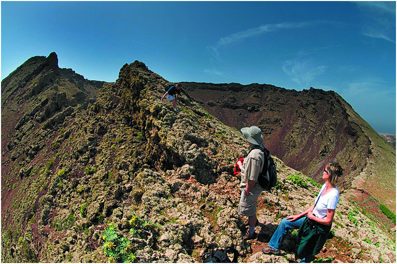Below: Team members explore the edge of the caldera of Monte Corona.
