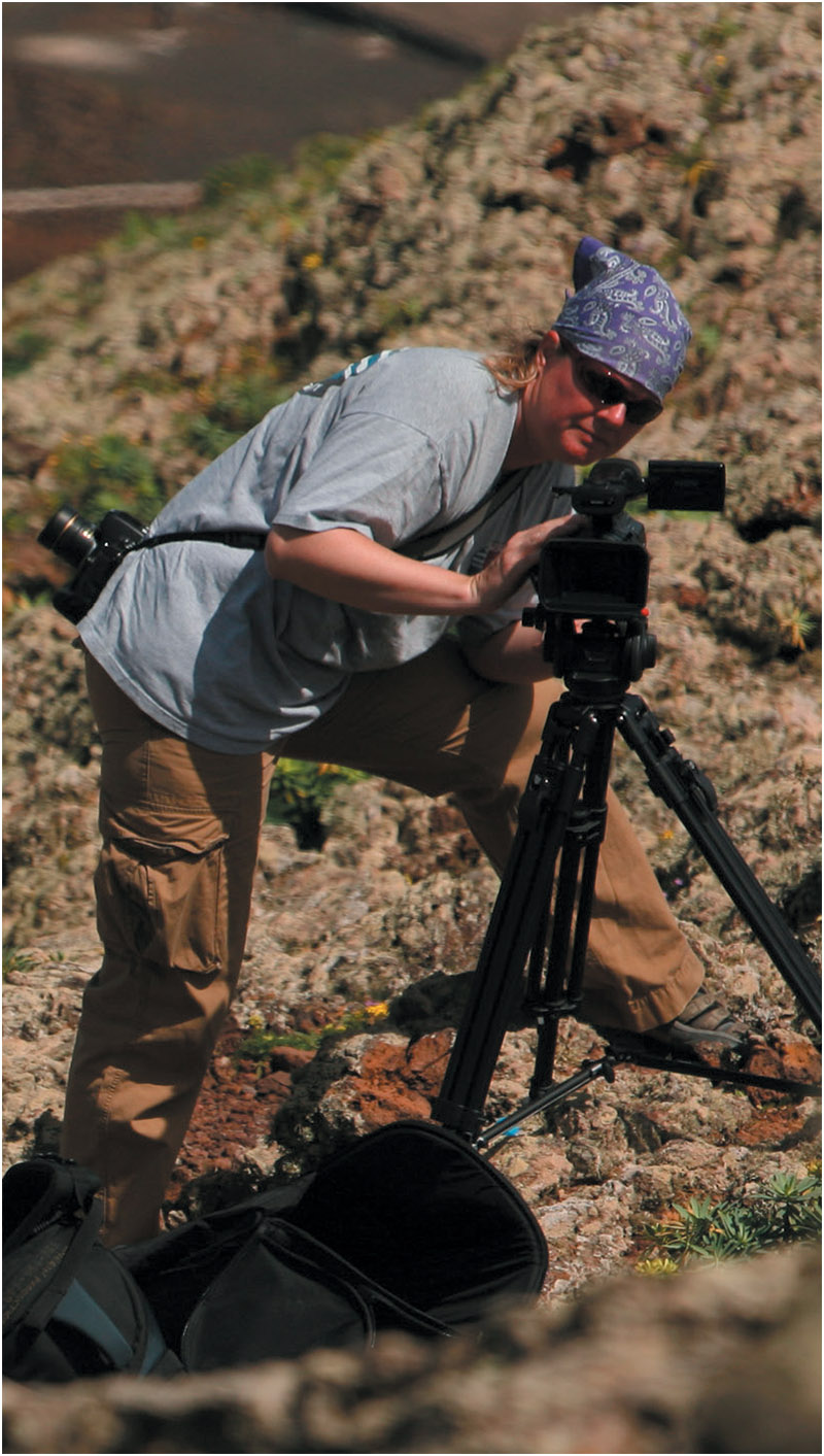 Above: The author, Jill Heinerth perches on the edge of the volcanic crater of Monte Corona.