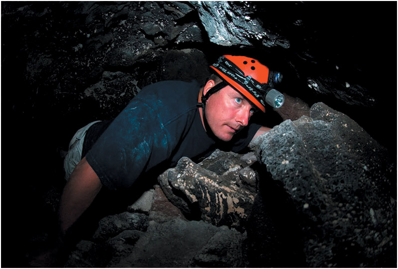 Above: Dr. Thomas Iliffe explores the underwater passages insearch of new life forms.