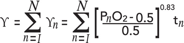 Pulmonary oxygen toxicity, Υ,follows a similar management scheme. As described, the total exposure, Υ, is the sum of interval exposures, Υn, |