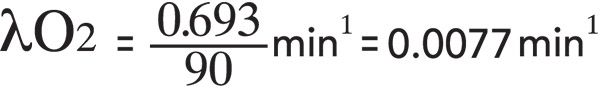 For repetitive dives, a surface interval penalty, similar to the nitrogen penalty in the USN Tables, can be levied for oxygen. A 90 min halftime is employed today, that is, the decay constant for residual oxygen CNS management, λO 2 , is |