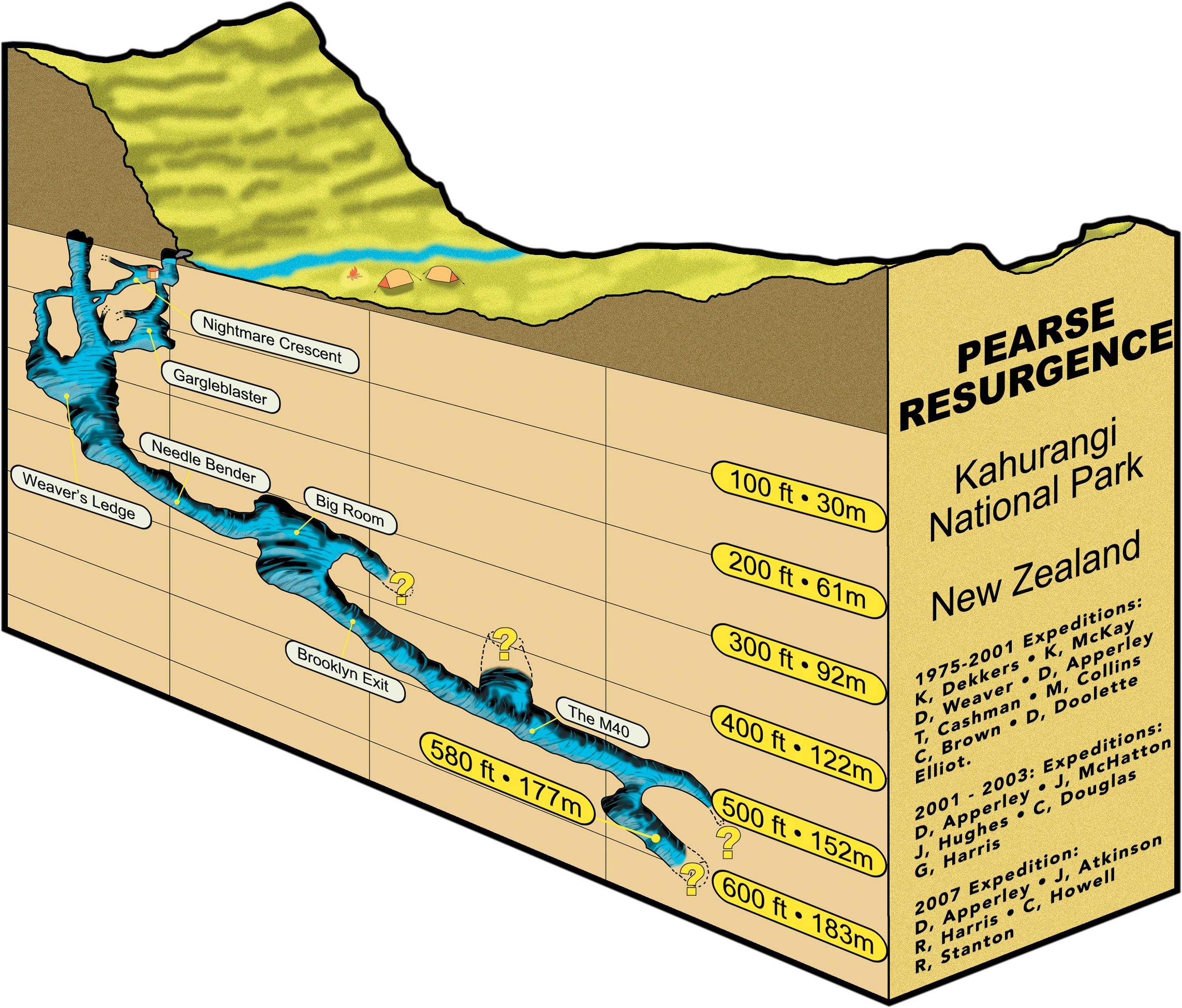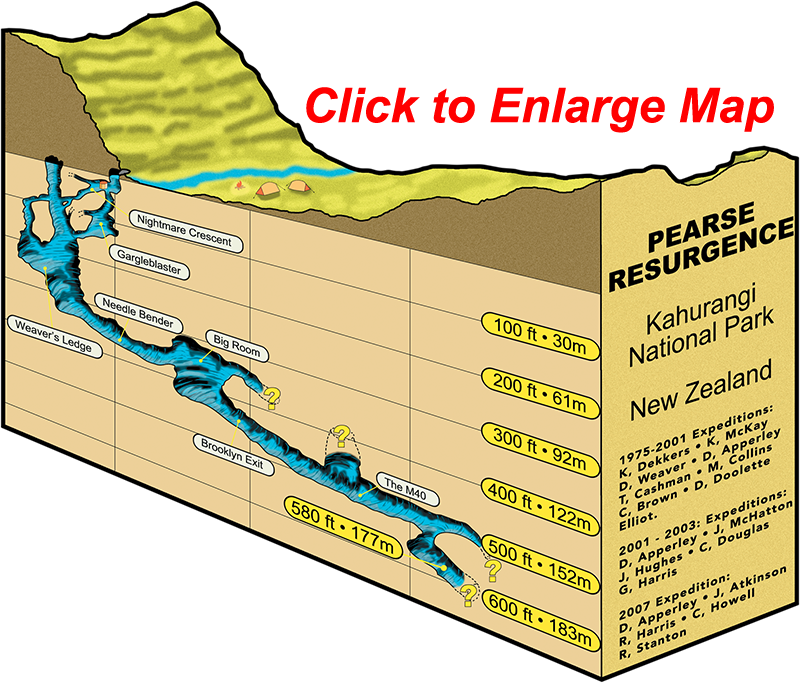 Progress in the cave has been hard won over the years. Keith Dekkers, Kieran McKay, Dave Apperley, Tim Cashman, Chris Brown, David Doolette, and others have made incremental advances since the cave was first dived in 1975.