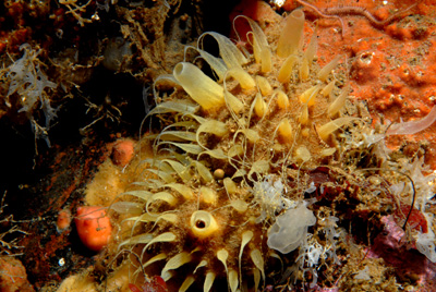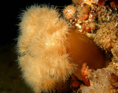 Our first dives in the White Sea took us to a site known as Anemone Rock. Here, in 45 FSW (14m), a huge boulder lies on the bottom, perhaps 20ft (6m) in height. This rocky outcrop rises up from the slope of Bolshoy Krestovy (Big Cross) Island. Some say it is as big as a three-story building and shaped like a dragons tooth. The seabed is very silty, so care must be taken so as not to stir up the bottom. Otherwise you will raise a tremendous cloud of sediment!