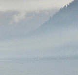 Photo: As we head out for another day of diving the wood smoke from burning logging debris filters down to sea level and is gently blown to seaward.