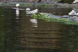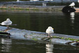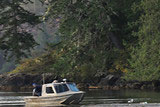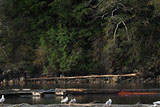 Photo: Storm damage to the breakwater that protects the Maquinna Marina from heavy weather. The dozer boat that is tied to the breakwater is used for log boom work and barge loading.