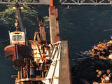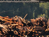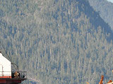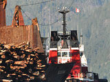 Photo: With the slow forest industry in the area sights like this are uncommon. This deep sea tug and barge, the Seaspan Regent and Seaspan Phoenix, have taken on a load of pulp wood destined for one of the pulp mills on the coast. The bundles of logs that are loaded on board can weigh as much 50 tons. The dozer boat that is being loaded on the stern is one of three that are carried on the barge.