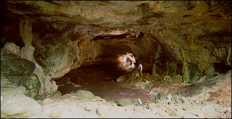 Above: Explorer Jon Bojar illuminates the large cavern zone of Cenote Tohoku.