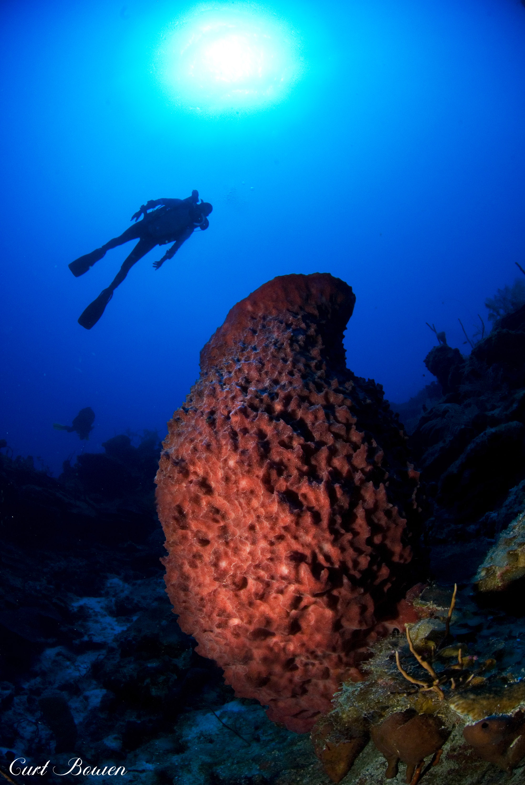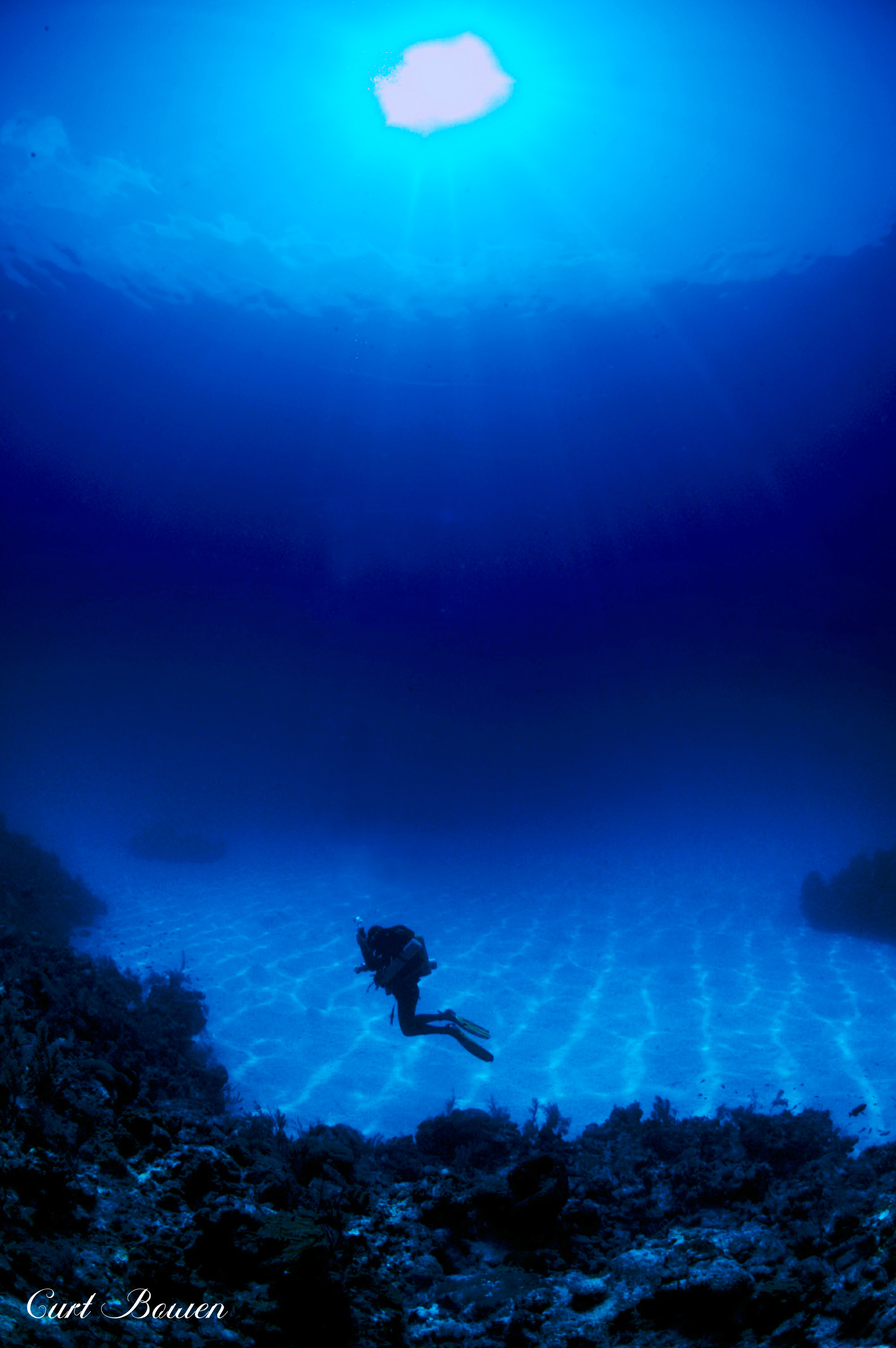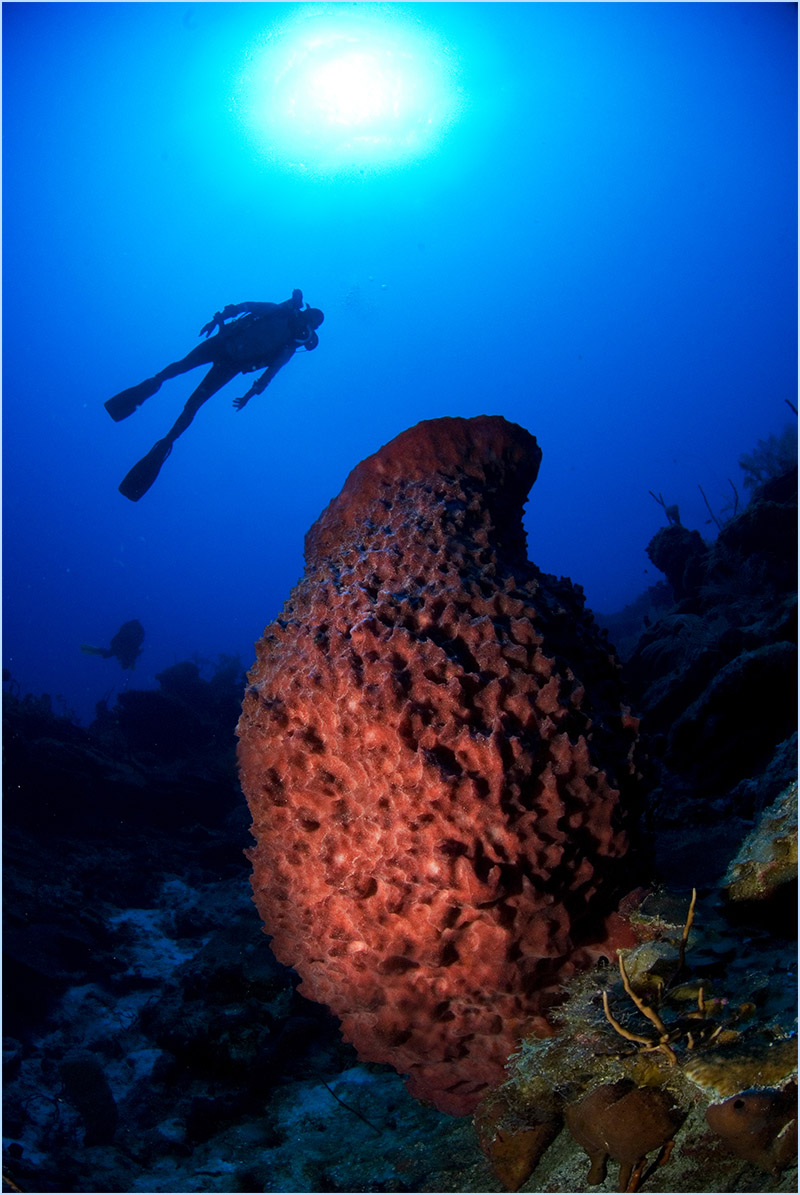 Don’t forget to look up. The view from below is breathtaking as the sun’s rays penetrate the surface, creating enchanting circles of light, visible from 300 feet below the surface. Your ascent will be nothing short of sensational, as you continue to observe the plethora of marine life forms that busily sail past virtually endlessly. Sights such as the Hawksbill turtles are certain to elicit a smile, owing to their characteristic behavior of slowing down to attentively acknowledging your presence. And the continuous kaleidoscope of sponges and coral colors that dress nearly every inch of seabed will leave you in wonderment of this peaceful, vibrant, underwater, art-museum.