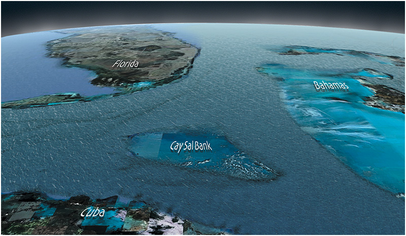 Cay Sal Bank is the third largest of the Bahamas banks and is closer to Cuba than to the Bahamas proper. It is 50 kilometers (31 miles) from the north side of Cuba and is part of the Bimini district of the Bahamas. It covers an area of 5,226 square kilometers (2,017 square miles).