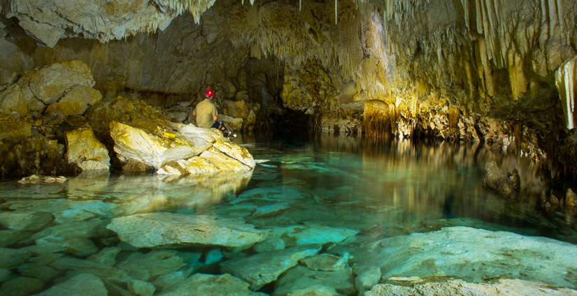 Below Photo: Many cave pools on Christmas Island are floored with huge boulders clearly illustrating the collapse origin of these caves.