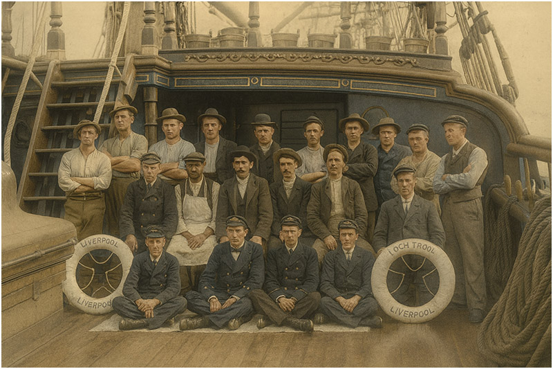 In August 1898, at just 17, Young signed on as Third Mate at Liverpool, undertaking voyages to Rotterdam and Norfolk, Virginia. He signed off that November, but the course of his life was now set. On 16 January 1899, the eighteen-year-old signed his Ordinary Apprentice’s Indenture at Liverpool, “to be taught the business of a seaman.” He served on the barque Loch Trool for two long voyages — first to Newcastle, New South Wales via South America (1899–1900), then to New Zealand (1900–1901).