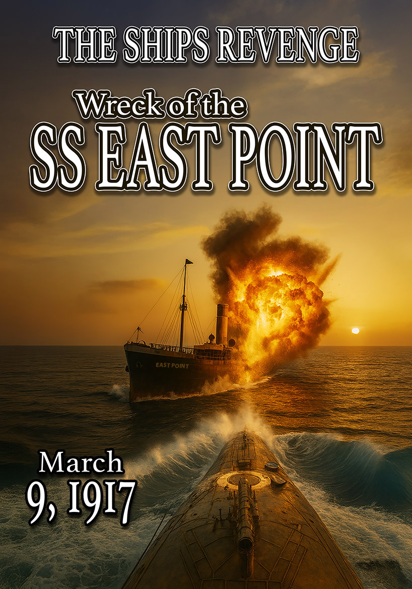 War brought further trials. On 9 March 1917, while en route from London to Philadelphia, East Point was torpedoed by German submarine U-48 near the Eddystone Light. Although damaged, she collided with the submarine, resulting in the deaths of U-48’s commander and navigator.