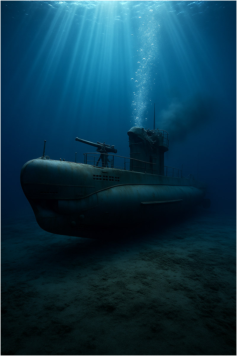 Silence settled, broken only by the creak of oars. Somewhere below, the German boat still lurked.