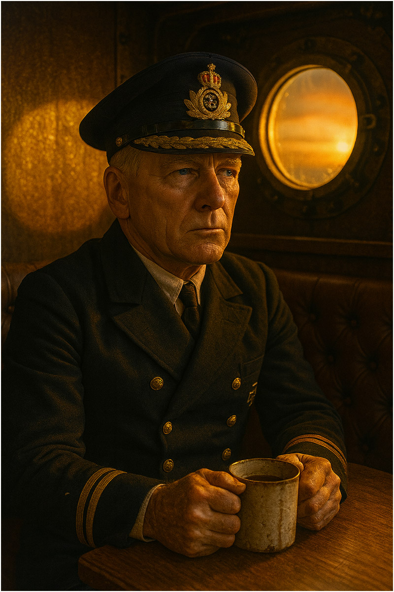 Young drained his tea and set the mug down with a soft clink. “We’ve got no escort and no guns worth a damn. I’ll take the bridge until full dark. If there’s a periscope out there, I’d rather see it first.”