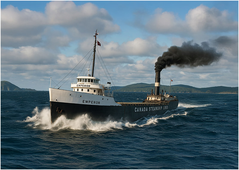 Two crew were lost for the voyage, too far gone to walk to the dock. Walkinshaw had not cared to delay. At 10:55 p.m., the Emperor gave two short blasts on her whistle, answered from shore. The lines went, the propeller bit, and she edged away into the night.