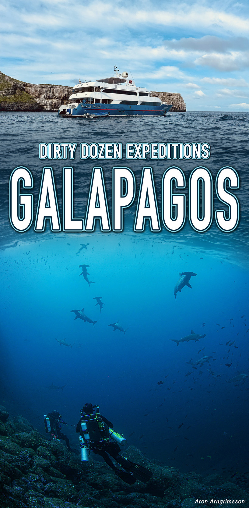 Diving in the Galapagos is an incredible adventure and one I’ve been fortunate enough to experience on open circuit. But imagine connecting with some of the ocean’s most unique wildlife on a rebreather! And just think how this experience is amplified when the entire dive group, guides included, are on closed circuit. So I was delighted to be offered the opportunity to lead a Dirty Dozen Expeditions team of eight CCR divers on an 11-day exploration of this stunning wildlife destination!