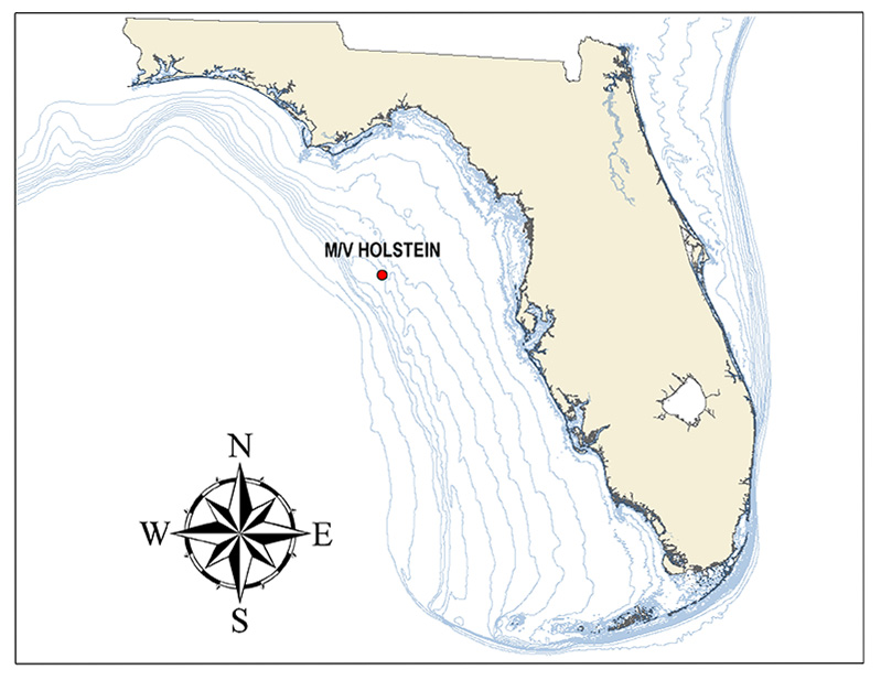 The rapid two-day blitzkrieg raced through the Gulf of Mexico, pouncing on the freighter Holsten. The M/V Holsten was a 1,859-ton, 255-foot-long freighter built in 1962. On October 2, 1992, she departed Pensacola carrying a cargo of 2,000 tons of bagged corn flour. Later that day, she encountered a rapidly building storm packing brutal 90-mile-per-hour winds. Besieged by 30-foot seas, the freighter began to founder approximately 100 miles off the Florida west coast.