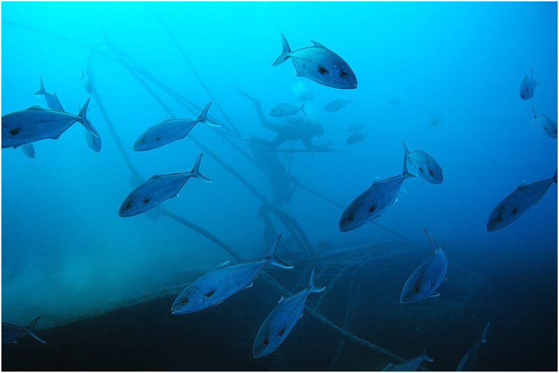 While the wreck itself is relatively new to the local marine ecosystem, it supports healthy assemblages of fish species. Schools of circling amberjack accompany divers during their visit, while large gag (grouper) and red snapper can be found around the base of the wreck. A few solitary Goliath grouper have been observed, unusual given the extreme distance from their typical shallow, preferred habitat. Also of note are numerous queen angelfish and swarms of butterflyfish that present the illusion that one is visiting a shallow tropical reef instead of a deep shipwreck over 100 miles out in the Gulf of Mexico.