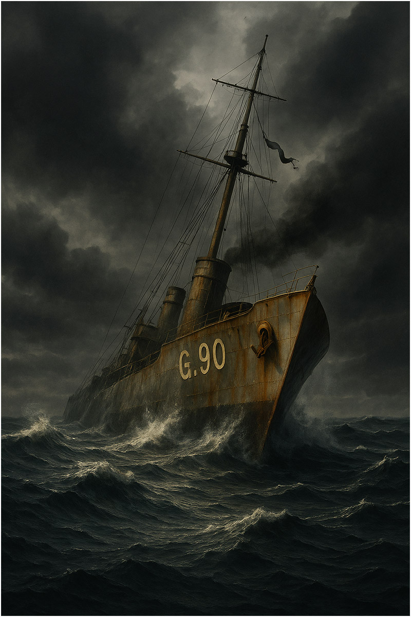 The Grand Fleet was exercising, which is the naval term for pretending something will go wrong in order to prevent it from happening. This required steaming in formation through a winter gale, at night, because the enemy—if he appeared—would not have the courtesy to wait for daylight or calm water. The fleet moved like a traveling town of steel, lights dimmed, signals flashing briefly, bows punching holes in black water. Then Hoste’s steering failed. It did not explode or catch fire; it simply stopped obeying. The rudder answered late, or not at all, or too much, and Hoste wandered alarmingly close to ships who had not agreed to be wandered into. Orders were shouted, corrections made, and collision narrowly avoided. Everyone agreed this was far too exciting for routine maneuvers. Someone sensible decided Hoste should return to Scapa Flow. Sensible decisions, however, have consequences. An escort was assigned—HMS Negro—because nothing attracts disaster faster than a damaged ship attempting to look normal. Negro took station astern, about four hundred yards back: close enough to see, far enough to avoid trouble, assuming trouble respected spacing.