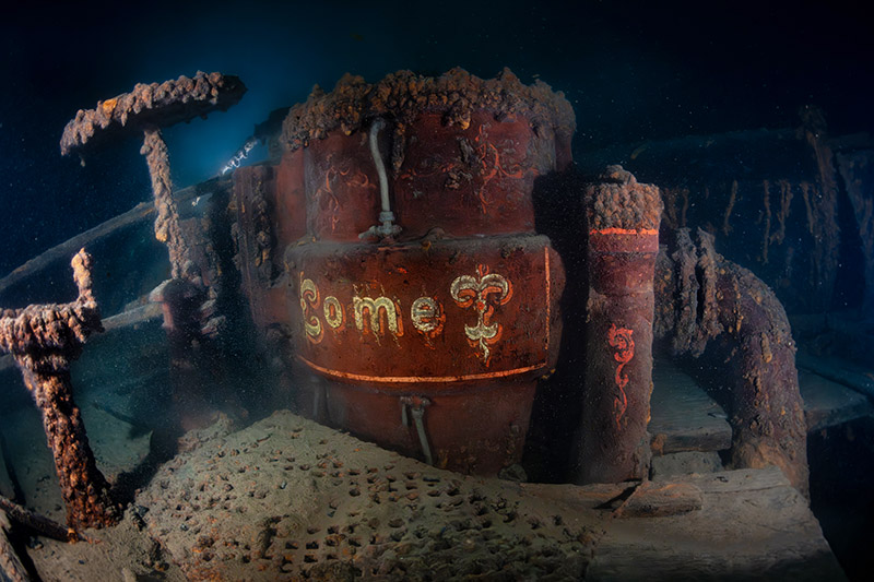 This is a shipwreck I could return to time and again. Discovered only a few years ago, it remains rich with detail—each dive revealing something new to see and photograph on this elegant vessel.