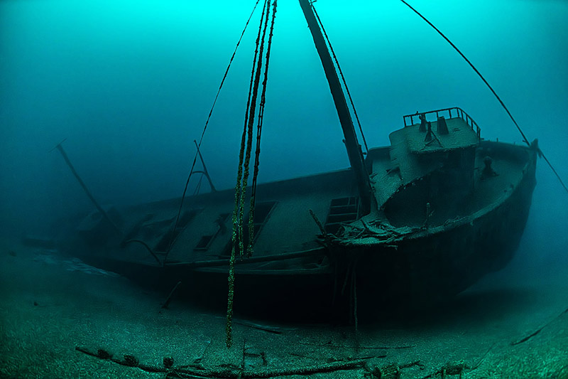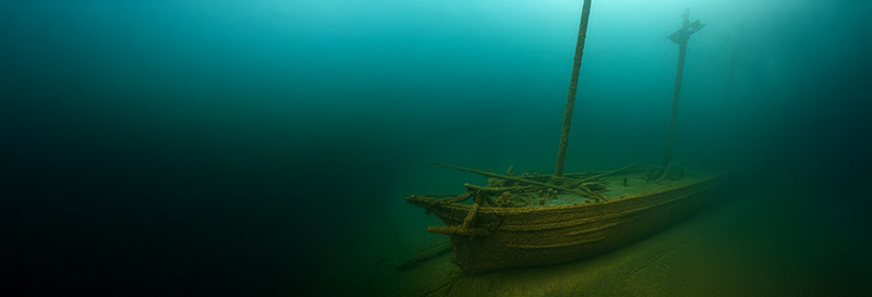 On this dive, I chose to focus on a single area, with Bob Larson lighting up the impact damage to give the scene scale. The beautifully clear waters of Lake Huron made the shot all the more rewarding—a rare treat in itself.