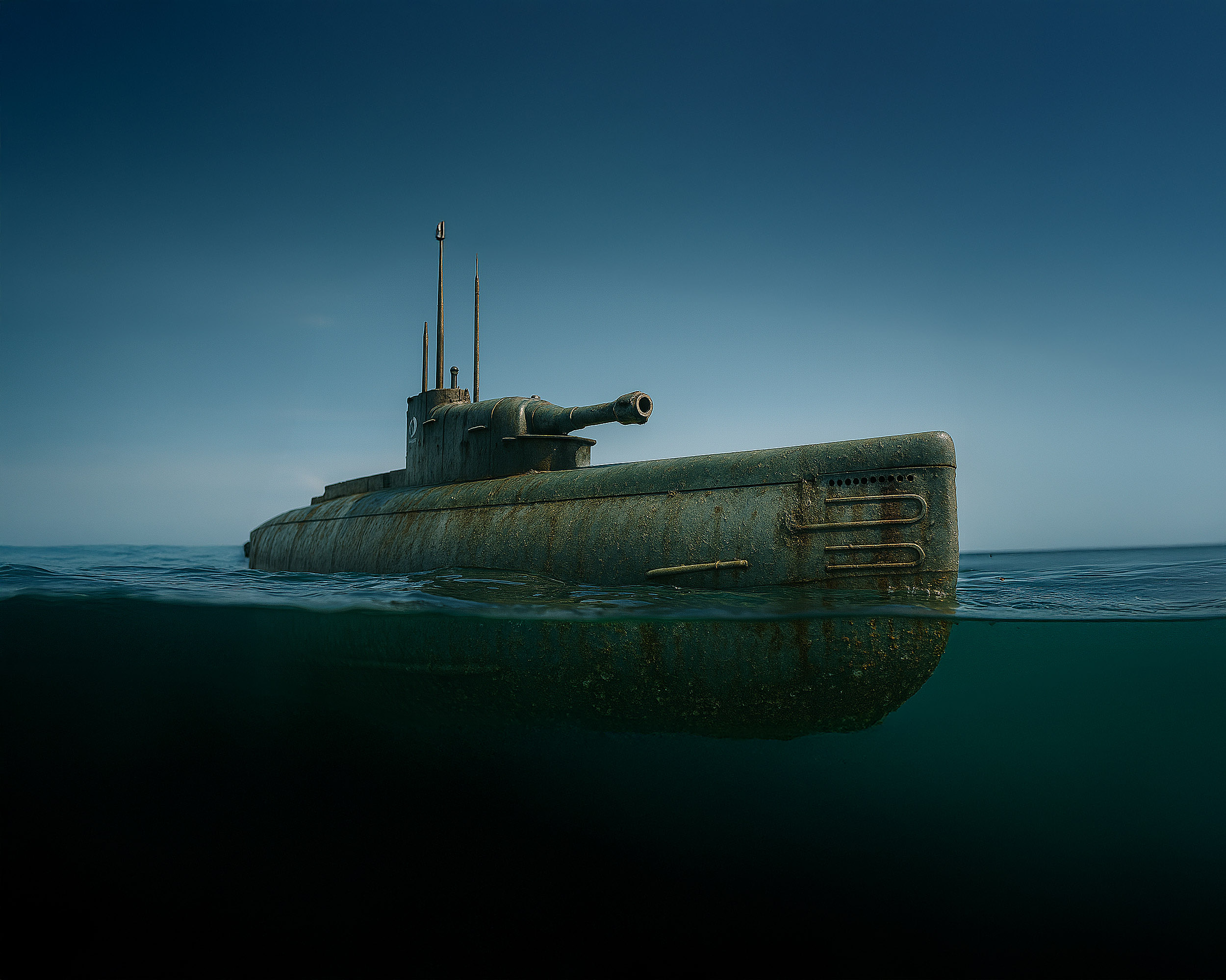 Inside, men threw their weight against the hatch wheel, but the sea’s strength was greater. It was too late. With a groan of surrender, the submarine slipped beneath the waves, the open hatch a gaping wound that dragged her to her grave.