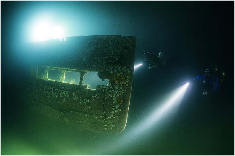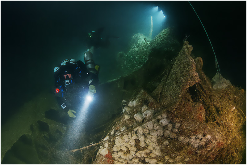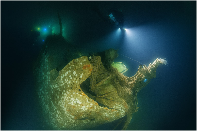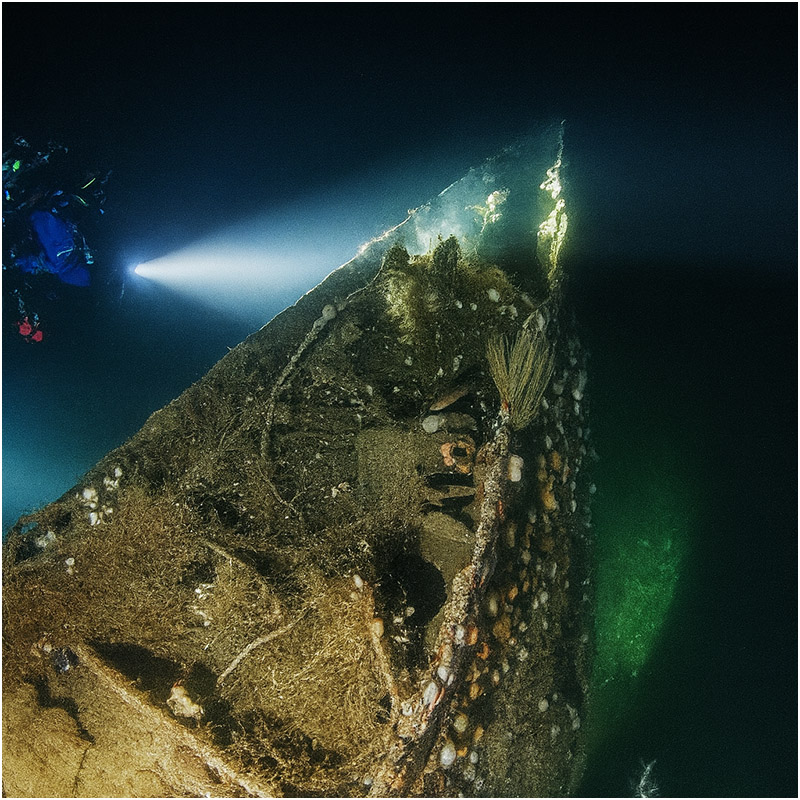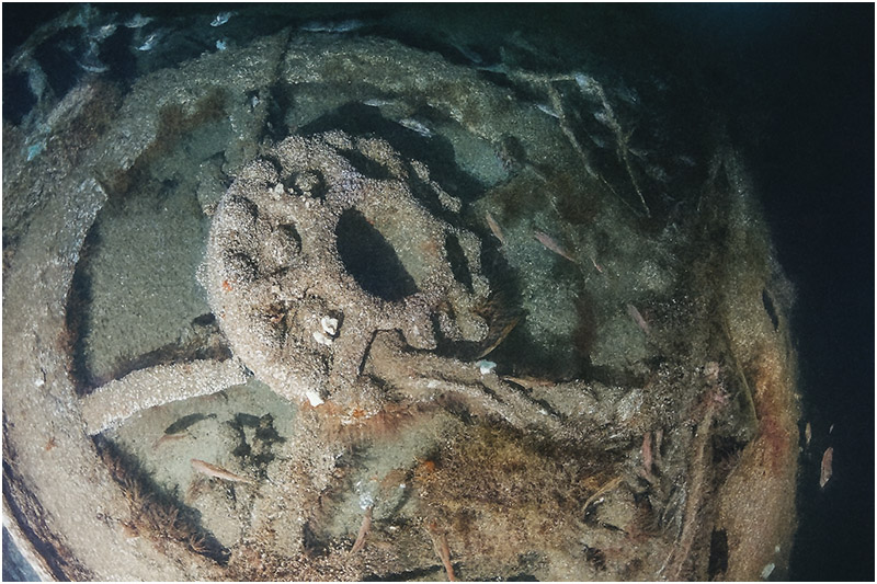 Photo above: Divers exploring the wreck of HMS M1 discover her conning tower hatch still open — a haunting clue that, in her final moments, someone inside had lifted it, allowing a handful of men to escape into the storm while sealing the fate of those trapped below.