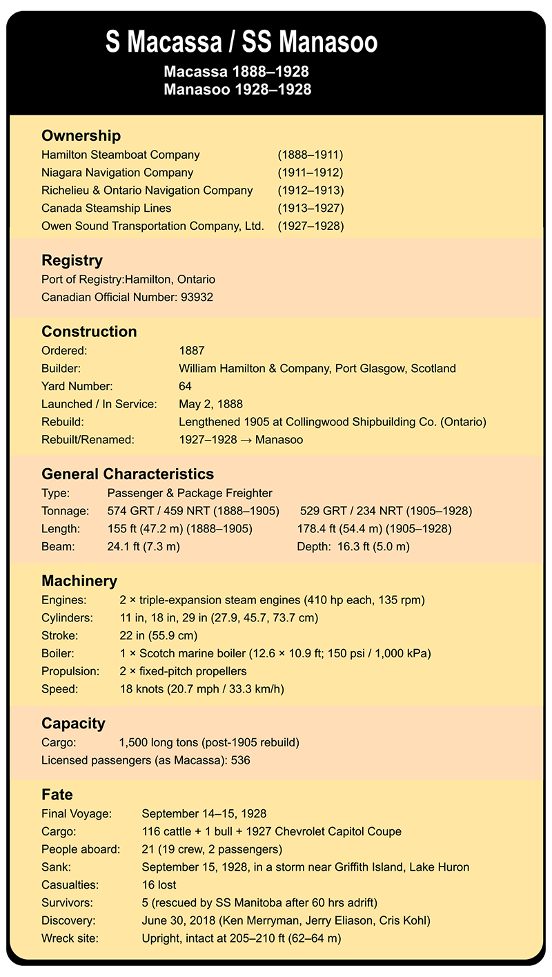 At 11 p.m., the SS Manasoo finally stirred to life. Lines were cast off the dock, coiled and hauled aboard. The steamer’s whistle bellowed across Manitowaning harbor, scattering gulls into the night air. Her propellers churned the black water as the vessel eased into the channel, hull heavy with the weight of cattle, machinery, and one gleaming Chevrolet coupe secured below.