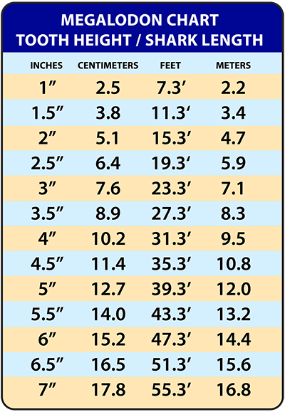 In the present day, the Great White species of shark holds the title of the largest ocean predator, an awe-inspiring creature that demands reverence, exerting its authority over the vast expanse of oceans and seas. A Great White can reach lengths of over 20ft and a weight exceeding 2,400 pounds. Incredibly, a different species of shark reigned supreme in the world’s oceans a mere 3.5 million years ago. The Megalodon (Meg), was a colossal creature whose size far exceeded that of today’s Great White sharks. By examining the size of the largest Meg teeth recovered, scientists can estimate that this tremendous shark could have exceeded 50ft in length and weighed more than 50 tons. (see size chart below)
