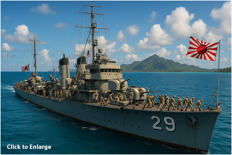 The Japanese destroyer Oite is certainly one wreck that is often missed by visiting divers, if only due to its location and depth, which at around 210–220 ft of water is much deeper than the majority of the other wrecks and some considerable distance away from the bulk concentration of tourist wrecks.