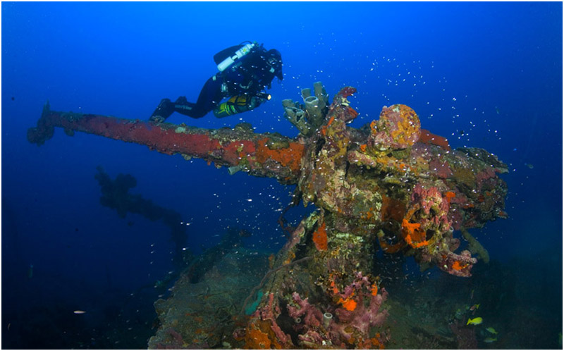 Truk Lagoon, known as Chuuk, is in the Federated States of Micronesia, which is the collective name given for the various island groups in the central Pacific. The islands lie east of the international date line and halfway between the Tropic of Cancer and the equator. With an area of 825 sq. miles, Truk is one of the largest lagoons in the world and was an important strategic command post for the Japanese during WW2. In Feb 1944, the Allies launched a massive air attack on Truk named ‘Operation Hailstone’ from no fewer than nine aircraft carriers that surrounded the Lagoon. Unaware, the Japanese were caught out by the attack, which became known as the ‘Japanese Pearl Harbor’. What was left from the attack now poses as one of the great undersea wonders of the world.