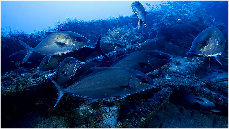 When descending the anchor line, the wreckage becomes visible at around 50 feet. At first I noticed the amazing amount of schooling fish covering the entire structure. Tens of thousands of small fish dart back and forth as larger predator fish like horse eyed jack, amberjacks and black grouper scurry off from the approaching divers.